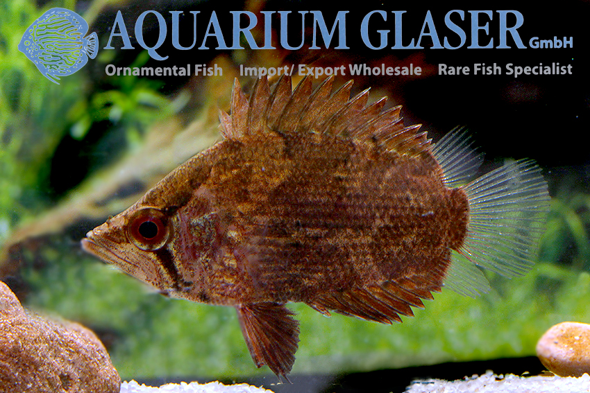 The African Leaffish is only very rarely offered. The species needs to be fed with live food items like White Moskito larvae, large Daphnia, small earthworms, Tubifex and small feeder fish. Anyone who is able and willing to fulfill this demand will find the African Leaffish a fascinating study subject.