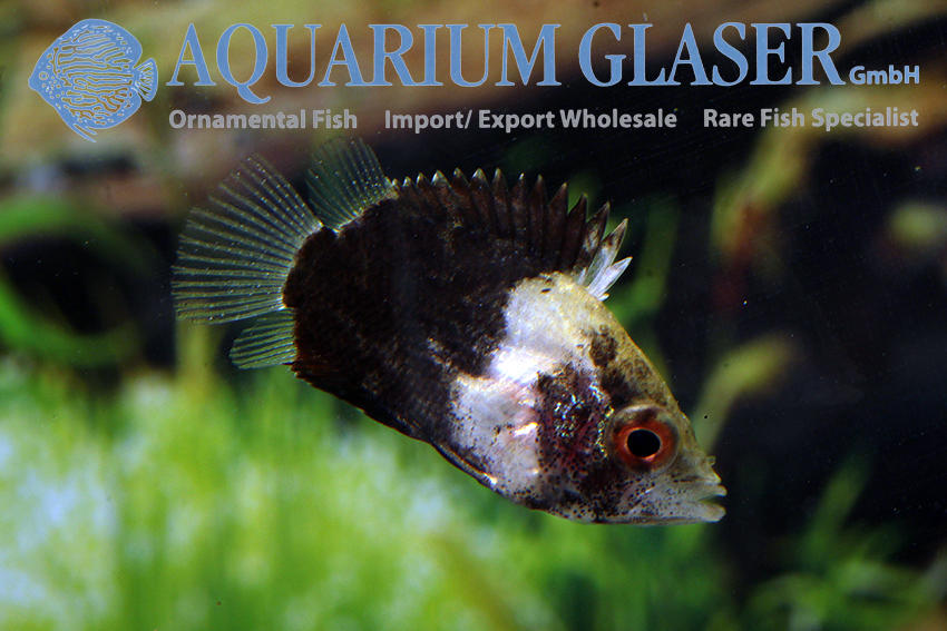 Polycentropsis abbreviata is known as the “African Leaffish”. The camouflage as a dead leaf is really astonishing. So the fish drifts around and preys on small fish and shrimps, which are caught with the very large evertable mouth. The ability to change coloration is amazing. The very same specimen can change within seconds from marbled to light beige or even almost black. Even very small leaffishes can do that. Specimens measuring 1-2 cm in length have a different, very contrasting black and white pattern. This coloration is also found in various labyrinth fish in very young stages, such as Ctenopoma weeksii, Sphaerichthys osphromenoides, and Ctenops nobilis. The purpose of this coloration has not yet been researched.